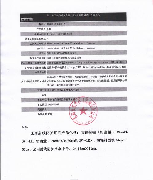 蘇州市蘇普利馬器械有限公司是專業(yè)從事醫(yī)用X射線防護系列用品、裝置、代理德國Dr.Goos-Suprema Gmbh.顧斯博士-蘇普利馬有限公司生產(chǎn)的原裝進口鉛衣及醫(yī)用觀片燈的生產(chǎn)銷售企業(yè).生產(chǎn)的X射線防護圍裙均來自美國SHIELDING公司的最新型超薄型防護材料,,具有防護性能可靠、穿戴舒適、輕便柔軟、操作自如等諸多優(yōu)點.產(chǎn)品均通過相關X射線檢測機構(gòu)的檢測,達到產(chǎn)品標準的要求.X射線醫(yī)用膠片觀察燈。是采用全LFD燈光技術(shù)。具有重量輕,光源均勻,亮度高,無頻閃,不變型,使用壽命長等特點。均取得了生產(chǎn)許可及醫(yī)查看更多>>